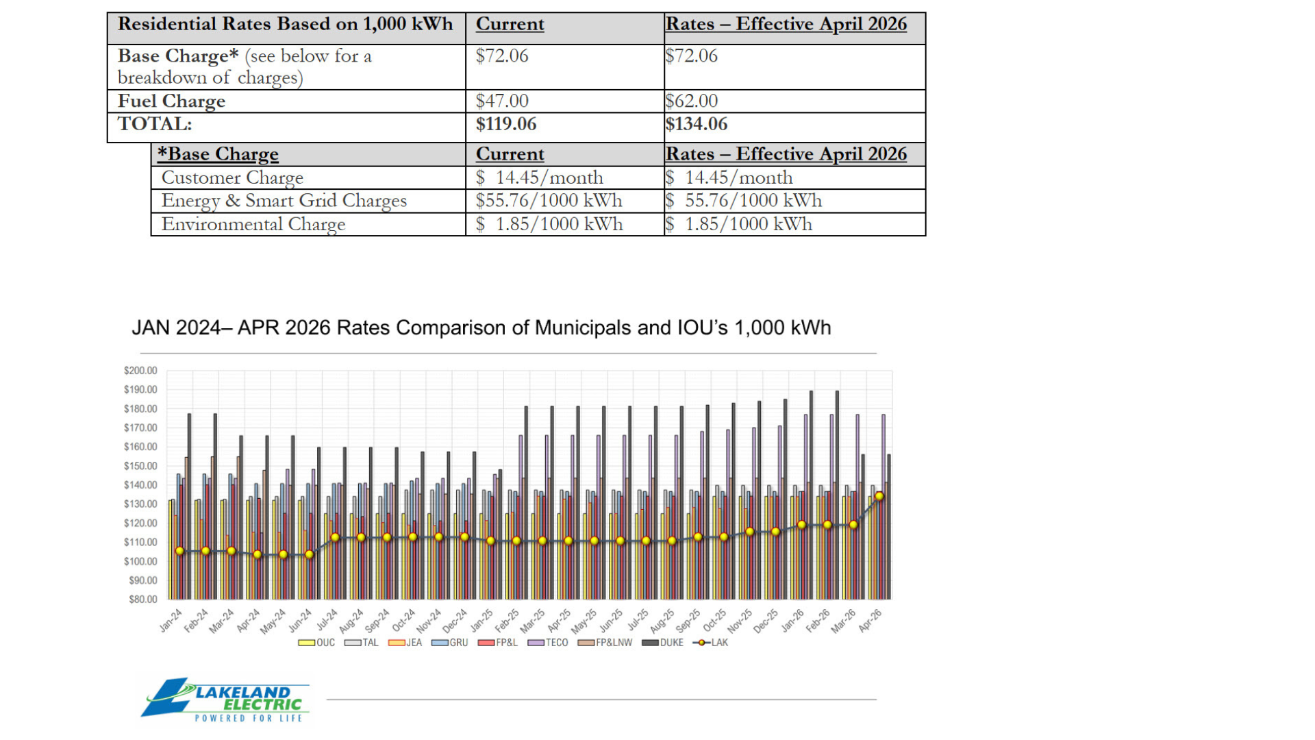 Lakeland Electric staff recommended implementing the adjustment during historically lower-usage spring months to help minimize the overall impact on customer bills.